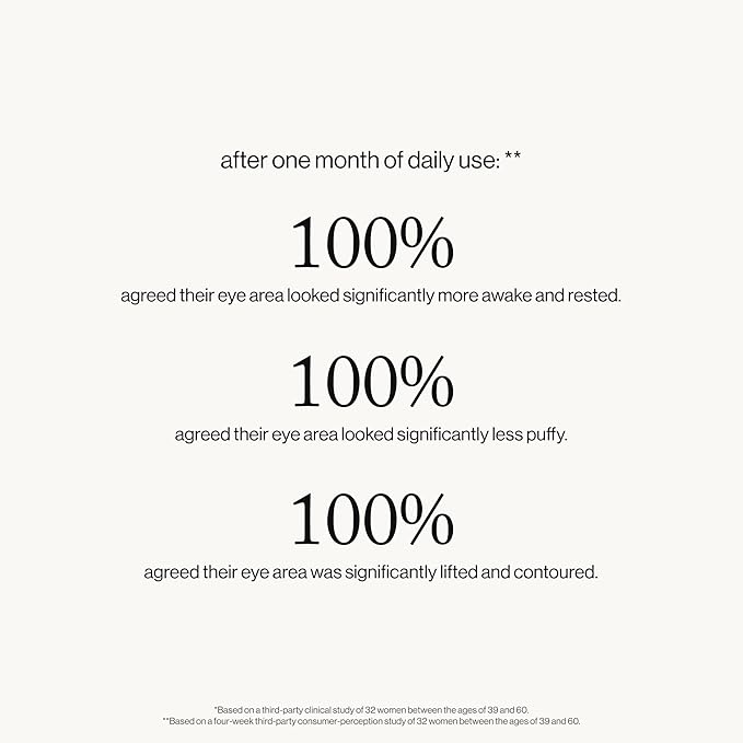 - Consumer Results: After one week of daily use (7 applications), 97% said their eye area appeared more rested, 97% said their eye area felt hydrated, 97% said their eye area looked refreshed, 97% said their eye area felt soothed and depuffed.*