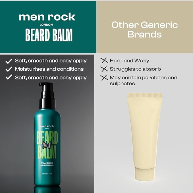 Men Rock Awakening Beard Balm - Sicilian Lime - Leave In Beard Conditioner for Men - Mens Skincare Products - Conditioning and Softening Balm - 3.4 oz
