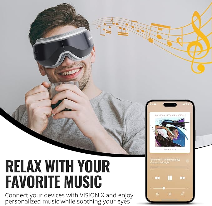 - CUSTOMIZATION & MEMORY FUNCTION: Tailor your eye relaxation with 5 massage modes, individually adjustable heat (High/Low/Off), massage pressure (High/Low/Off), and music volume (High/Medium/Off). The unique memory function saves your preferences for effortless eye relief every time.