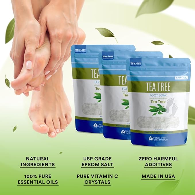 - Tea Tree Foot Soak: Made With USP Grade Epsom Salt, Pure Essential Oils, & Vitamin C Crystals