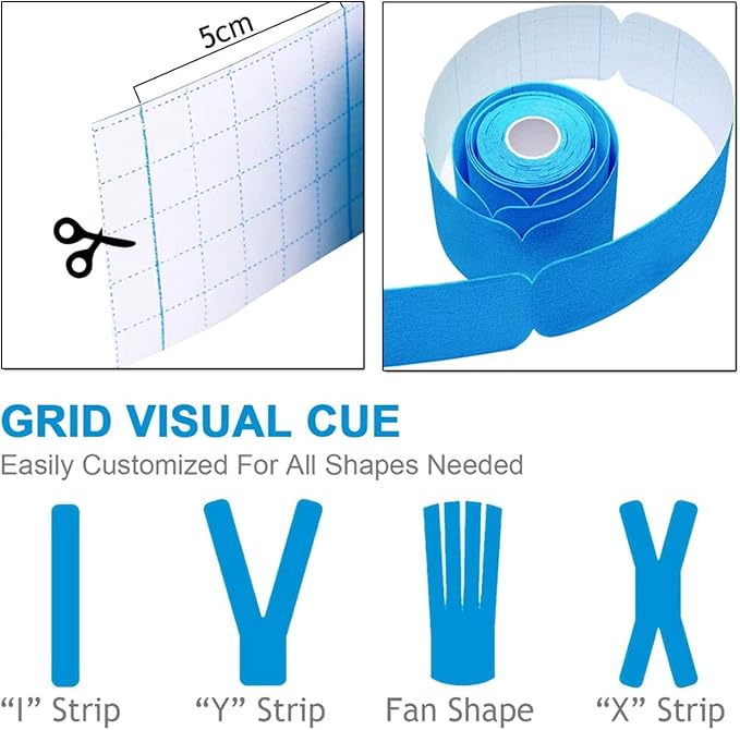 - 🎈EASY TO USE】Quickly and effortlessly place the tape where you need it with no mess or adhesive residue left after removal.Tear-off the non-adhesive grid paper and stretch the tape to varying degrees depending on the strength of support you require. You can also cut the tape into different size according the grid on the back of tape.Avoid touching the sticky side with your fingers as the oils will affect how sticky it is.
