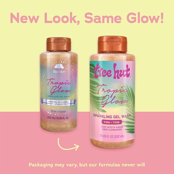 Tree Hut Tropic Glow Sparkling Gel Wash, Moisturizing & Hydrating Body Wash with Shea Butter, Warm Scent, Soft & Radiant Skin, 18 fl oz