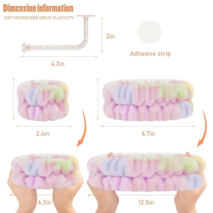 - 【Spa Headband and Wristband Set】You will receive 2 pieces of headbands for washing face, 4 pieces (2 pairs) of wrist bands and 1 piece "L" shaped hook in a box. Nice combination to change and wash. After use, hang the headband and wristbands on the hook for quick drying and convenient storage.