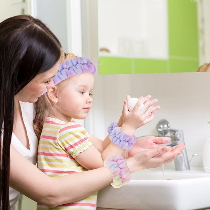 - 【Multi-Function】Face washing headband and wristbands can be applied on most daily occasions, such as skin care, makeup, housework, fitness, birthday spa party and sleepover party, etc. You can share face washing wristbands and headband sets with your family and friends, or you can give them as gifts.