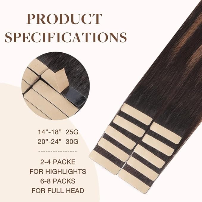 GOO GOO Tape in Hair Extensions Human Hair, 2/6/2 Balayage Dark Brown to Chestnut Brown, 16inch 25g 10pcs, Skin Weft Seamless Invisible, Silky Straight with Thick Ends, Remy Human Hair