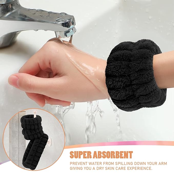 - 【Super Absorbent】Face washing wristbands prevent water from spilling down your arm and face wash headband keeps your hair dry. Choose CERETIA face washing headband and wristband set to give you a dry skin care experience and prevent the water from spilling in the bathroom when washing.