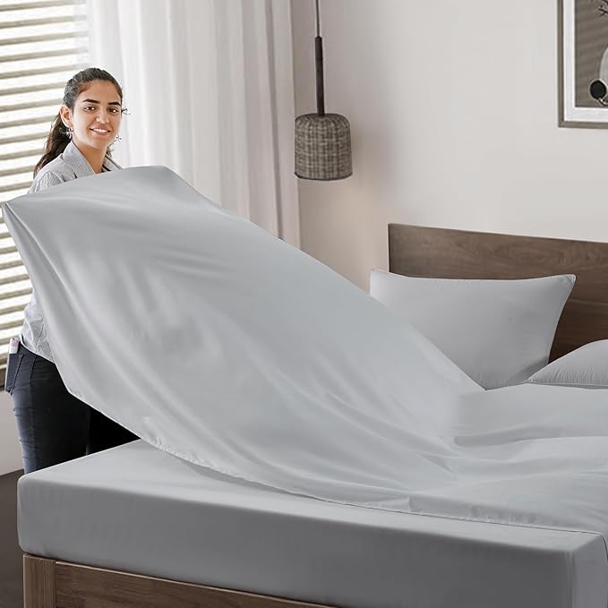 Maple&Stone Twin Flat Sheet 6 Pack,Premium Soft & Breathable,Brushed Microfiber Fabric,Anti-Shrinkage & Non-Fading,Bulk Flat Sheets Only Twin Size(Light Grey)
