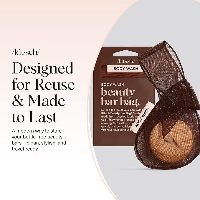 - FUNCTIONAL & EASY TO USE SOAP POUCH – The Kitsch soap bag is expertly designed with labeled pouches for body wash, shampoo, and conditioner bars, so you’ll never mix them up. This versatile soap pouch hangs neatly in your shower for effortless organization.