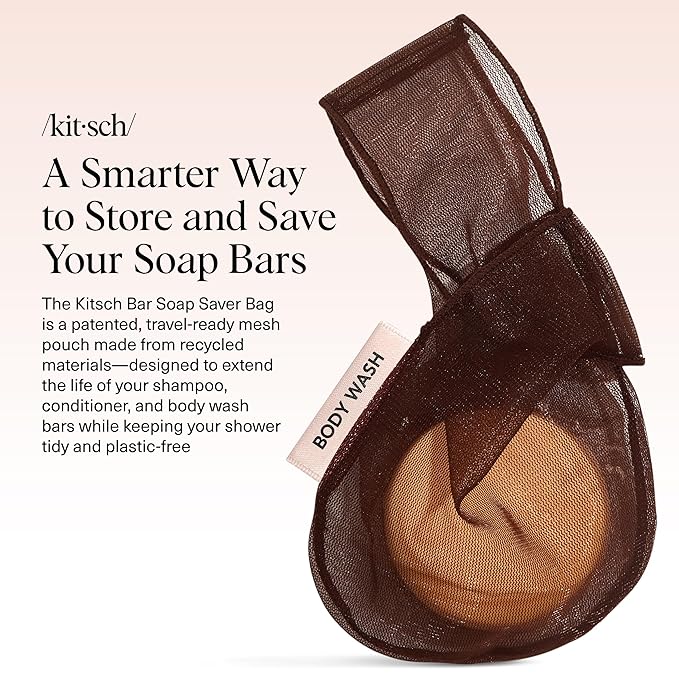 Kitsch Bar Soap Saver Bag – Patented Mesh Bag Soap Holder for Body Wash Bar - Extends Use & Prevents Soggy Mess - Recycled Mesh Beauty Pouch, Eco-Friendly – Chocolate