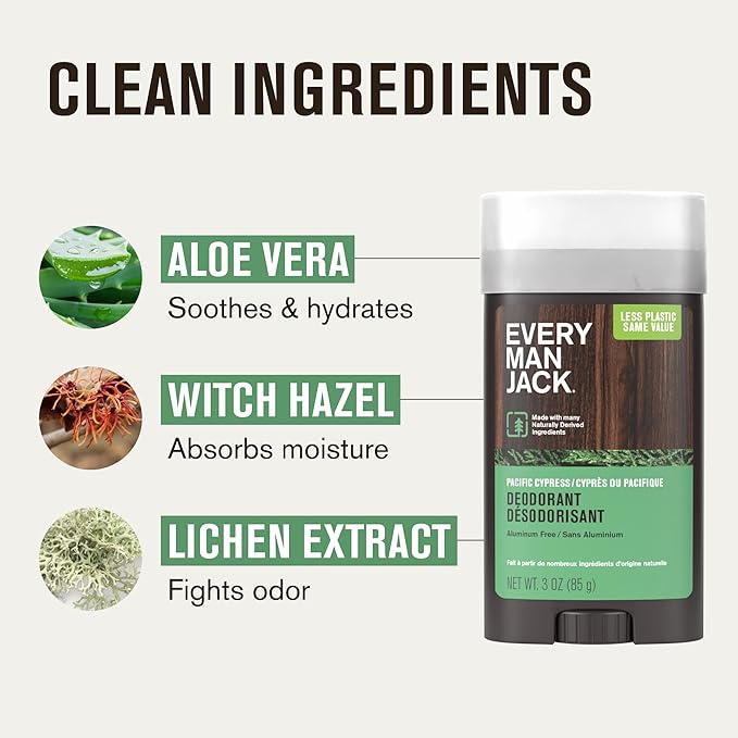 Every Man Jack Pacific Cypress Men’s Deodorant - Stay Fresh with Aluminum Free Deodorant For all Skin Types - Odor Crushing, Long Lasting, with Naturally Derived Ingredients - 3oz (2 Pack)