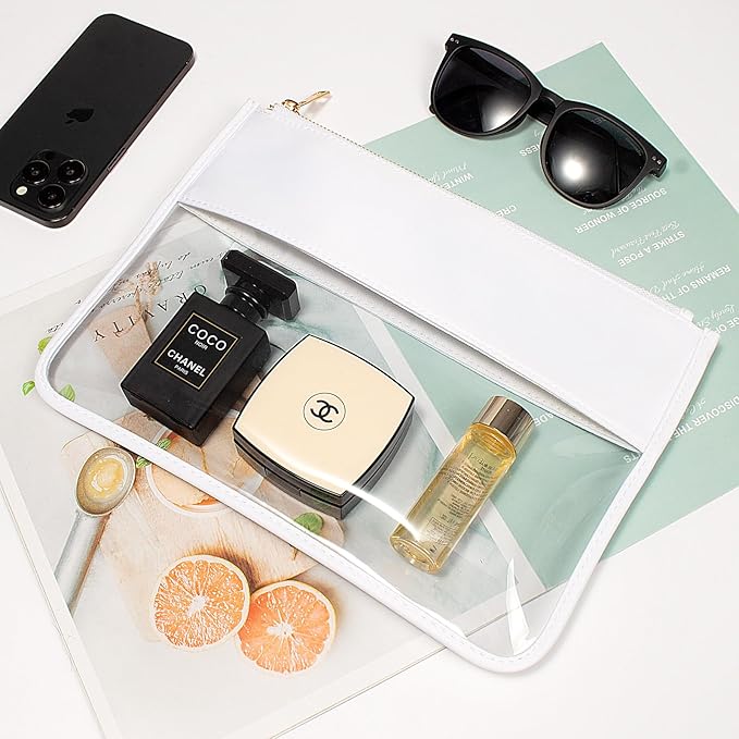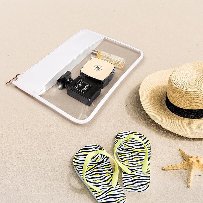 LETGO Clear Makeup Bag Pouch for Travel with Zipper,Clear Cosmetic Bag for Women Waterproof Snacks Bag Stadium Purse Toiletry Bag Bogg Bag Accessories (0-White)