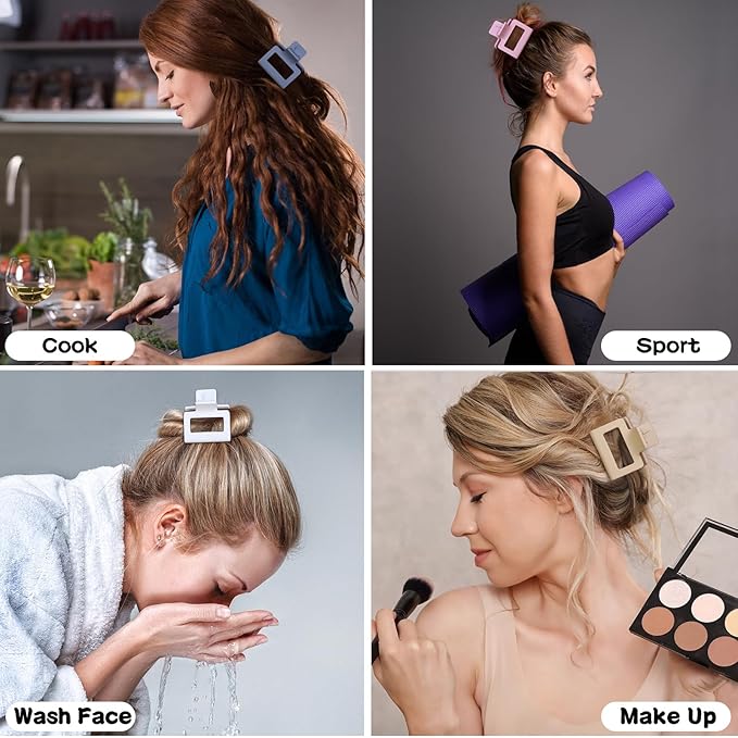 - High Quality: These hair claw clips are made of high-quality rubber paint and plastic materials, strong metal springs. Comfortable matte texture and Acrylic quality and Non- Slip design.
