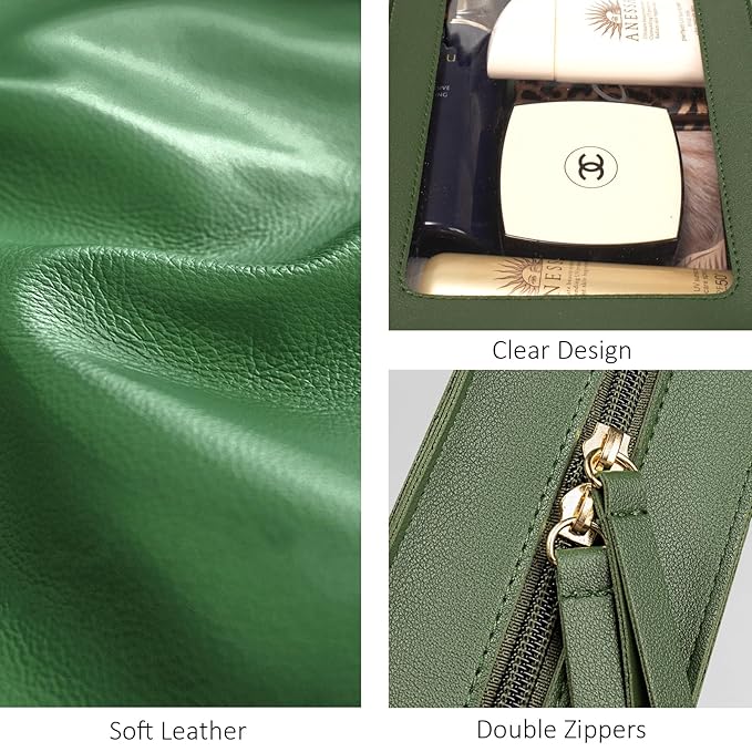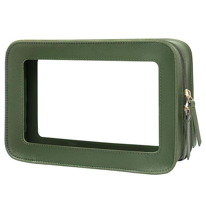 LETGO Clear Makeup Bags, TSA Approved Toiletry Bag with Zipper, Clear Makeup Organizer Fit Carry-on Travel Essentials,Clear Cosmetic Bags for Women Men (O-Green)