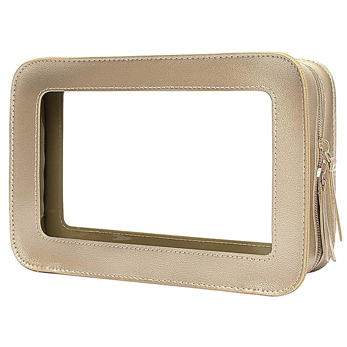 LETGO Clear Makeup Bags, TSA Approved Toiletry Bag with Zipper, Clear Makeup Organizer Fit Carry-on Travel Essentials,Clear Cosmetic Bags for Women Men (O-Gold)