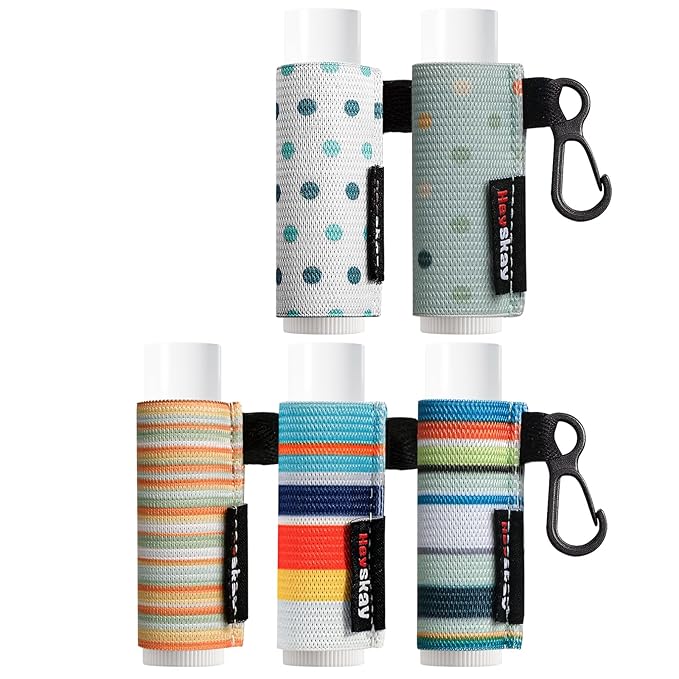 HEYSKAY 5pcs Lip Balm Holder Keychain Lipstick Sleeves Lip Gloss Holder Chapstick Elastic Sleeves for Men Women(Dot/Strip)