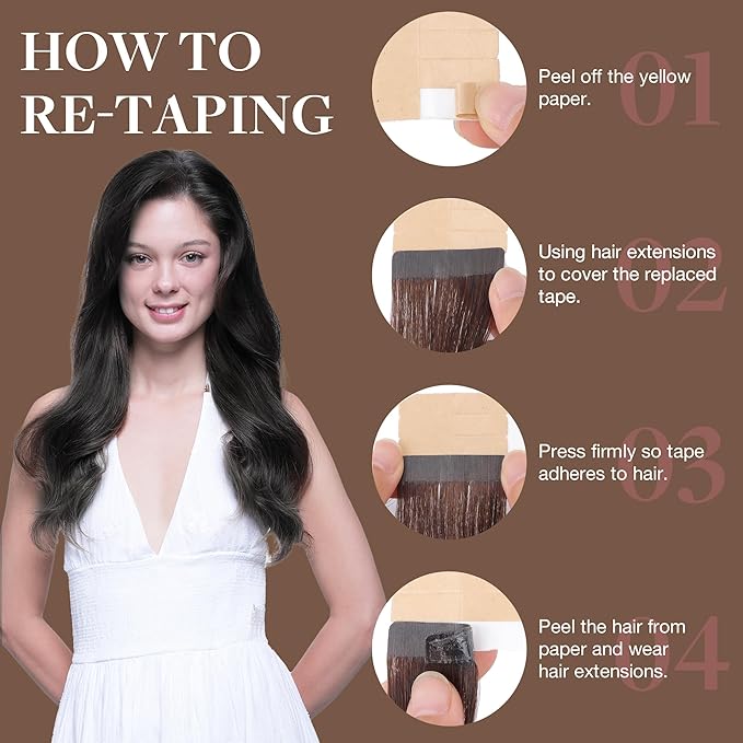 - Strong & Gentle Tape: Waterproof, hypoallergenic tape that's gentle on hair and skin. Strengthens with slight heat for a secure fit. Lasts 4–6 weeks per use. Easy to apply and remove without damage. Reusable for 3–4 months with proper care.