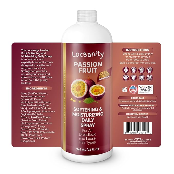 - Healthy, All-Season Locs for an Amazing Value - Experience the joy of healthy locs with Locsanity’s passion fruit hair refresher spray – now available in a compact size for on-the-go refreshment, plus a larger size to ensure 24/7 moisturizing coverage all year round!