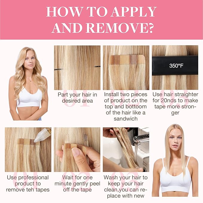 - Heat-Styling & Care Tips: GOO GOO tape in extensions are heat-safe up to 250°F. Curl or straighten as desired. Wash gently with mild shampoo in lukewarm water, then air dry. Keep them smooth, shiny, and ready for any look.
