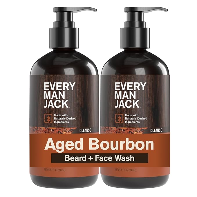 Every Man Jack Beard + Face Wash - Subtle Aged Bourbon Fragrance - Cleans and Helps Condition and Soften Your Beard and Skin Underneath - Naturally Derived with Aloe and Glycerin- 6.7 fl oz (2 Pack)