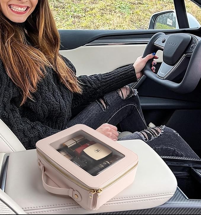 - ✈️CAR MUST HAVE ESSENTIALS CLEAR MAKEUP BAG : Large Size Measuring 9.84'' x 7.67'' x 3.14''(25cm x19.5cm x 8cm), Mini Size 5'' x 4.7'' x 2''(12.7cm x 12cm x 5cm), our clear makeup bag is elegant ,and stylish, this makeup travel organizer was designed in a minimalist boxy shape and Crafted in beautiful PU leather and finished with polished hardware, the trendy makeup bag is easy to carrying in your handbag or carry-on.