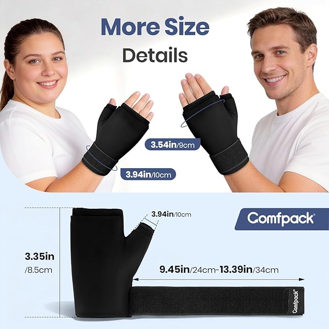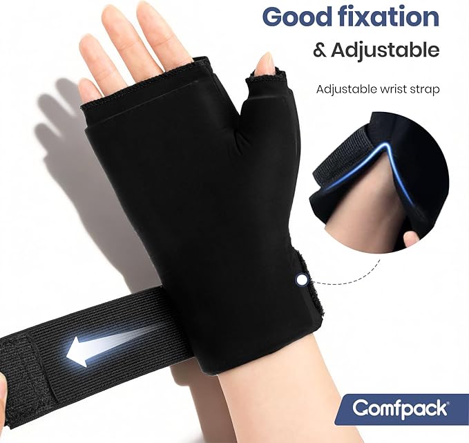 - Targeted Hand Thumb & Wrist Pain Relief - Comfpack hand ice pack glove with uniquely thumb cuff design can provide pain relief for hands, thumb, wrist, this reusable ice glove actively reduces inflammation, carpal tunnel, hand injuries, arthritis, mommy wrist, tendonitis, tenosynovitis, and can also speed up surgery recovery.