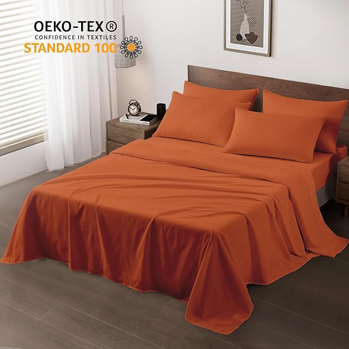Maple&Stone Queen Flat Sheet 6 Pack,Premium Soft & Breathable,Brushed Microfiber Fabric,Anti-Shrinkage & Non-Fading,Bulk Flat Sheets Only Queen Size (Burnt Orange)