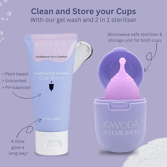 - STERILISE AND STORE IN ONE CUP - Keep your cups clean and hygienic with our 2 in 1 storage cup that doubles as a microwavable steriliser. Also includes a complimentary cup wash to keep cups clean until your next menstrual cycle.