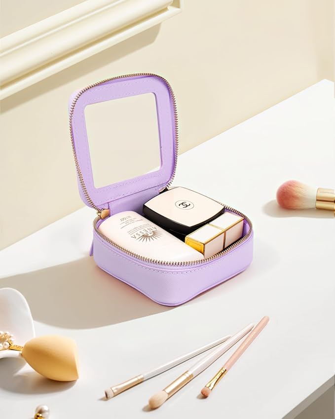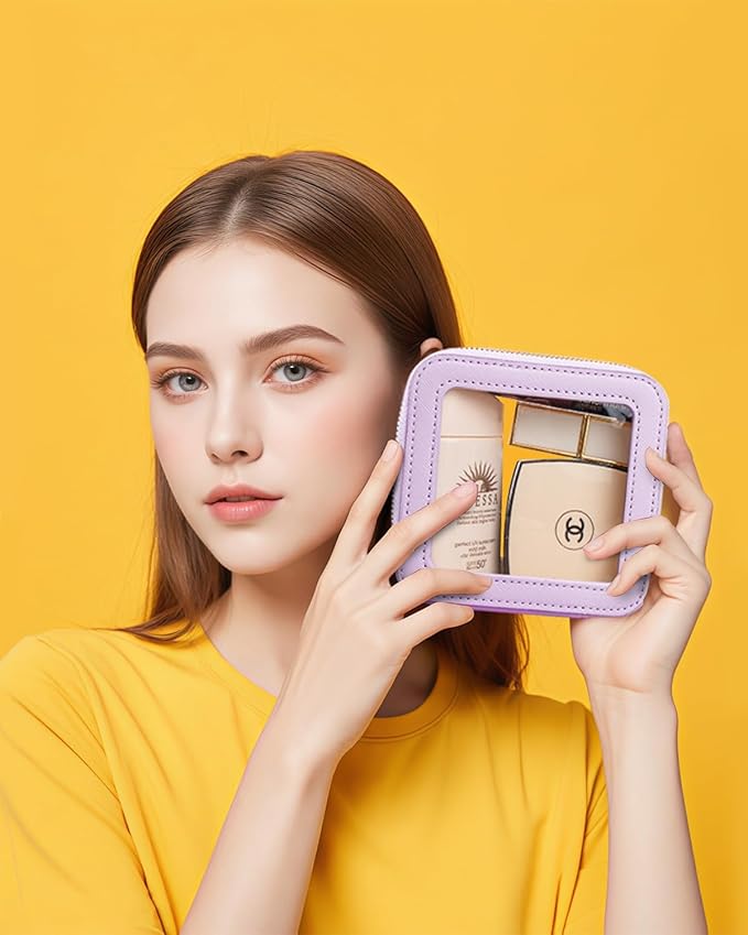 LETGO Clear Makeup Bags, TSA Approved Toiletry Bag with Zipper, Mini Clear Makeup Organizer Fit Carry-on Travel Essentials,Clear Cosmetic Bags for Women Men (0-Mini-Purple)