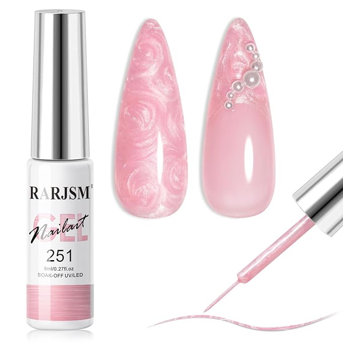 RARJSM Pearl Pink Nail Art Gel Liner Pearlescent Shell Glitter Swirl Effect Gel Nail Polish 8ml Build in Thin Brush Painted Drawing Striper Gelpolish Soak off Curing Requires for Home Salon Design