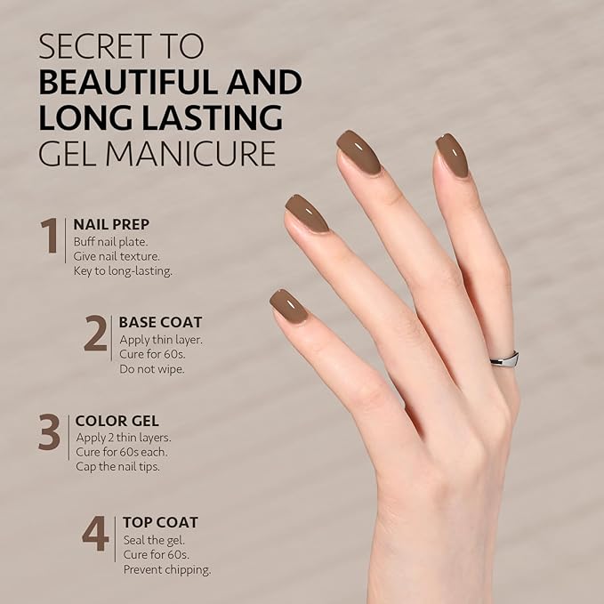 - 4 Weeks Long-Lasting: Buff your nail bed before base coat to give your nail texture. Apply top coat after color gel for glossy finish.