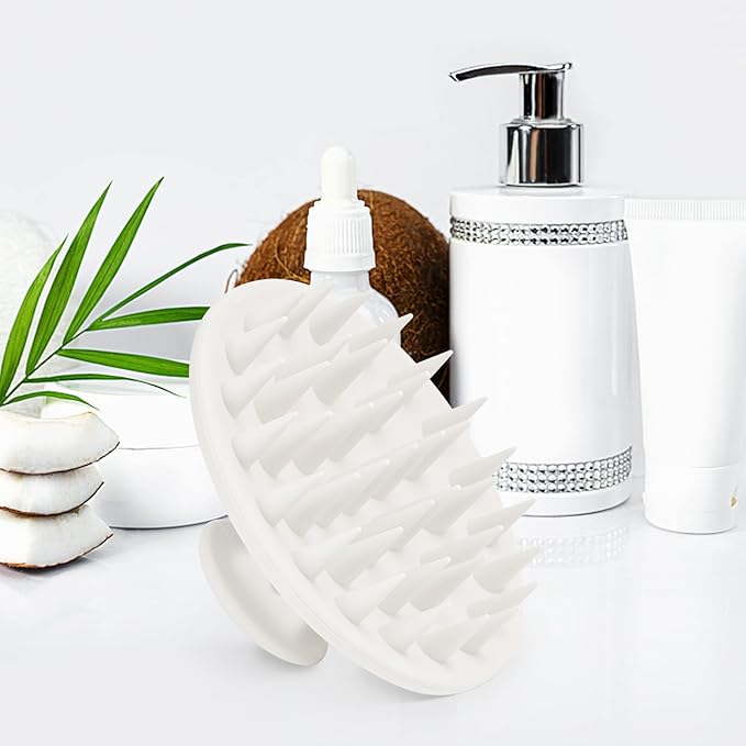 Silicone Scalp Massager Shampoo Brush, Scalp Brush for Hair Growth & Dandruff Removal, Hair Scrubber Scalp Stimulator Exfoliator Brush with Soft Bristles for Wet Dry Scalp Care (White)