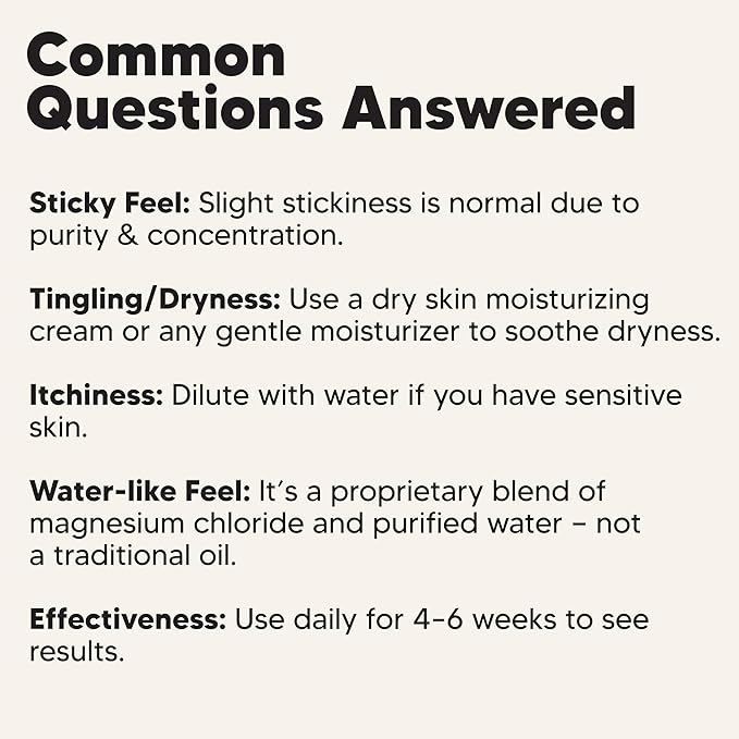 - Hecho con aceite de magnesio, aceite de magnesio para los pies, y aceite magnesio. Este spray de aplicación tópica es ideal para quienes buscan spray de magnesio o aceite de magnecio para aliviar el cansancio de los pies.