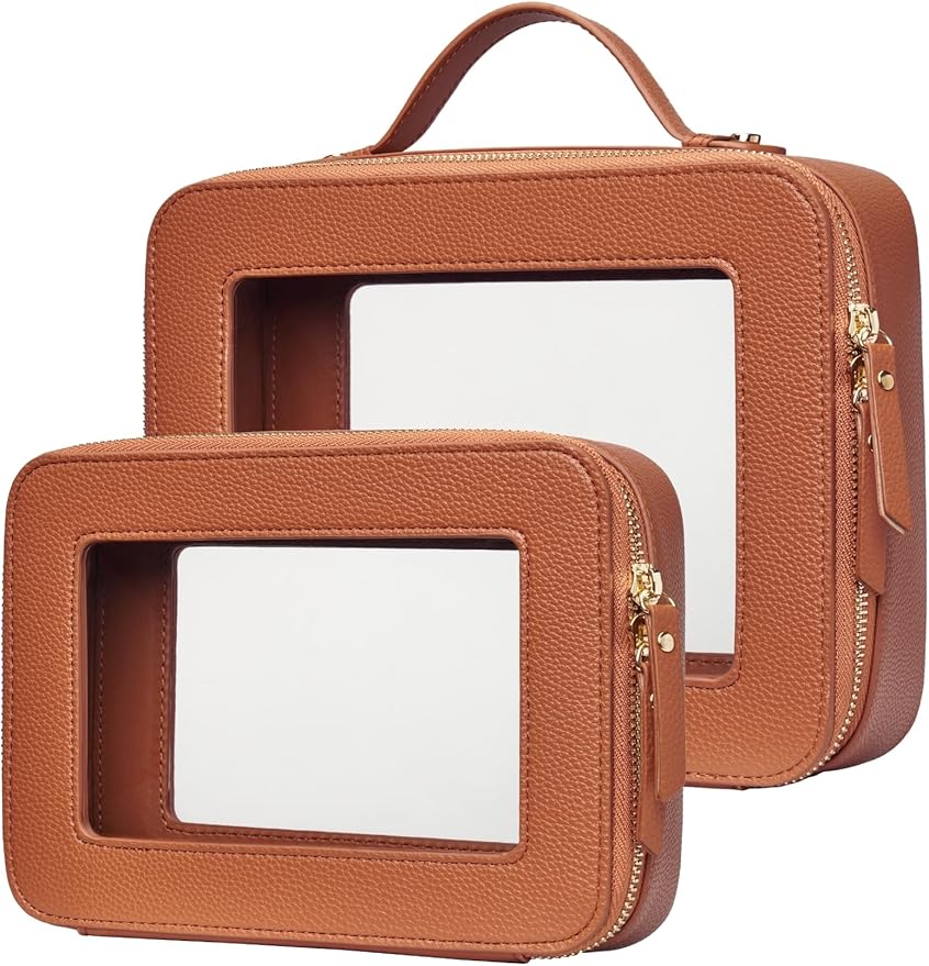 - [Two-Piece Set] – The clear bag set consists of two different sizes, specifically designed to separate makeup and skincare products effectively. The medium size measures 8.3'' x 6.1'' x 2.4'' (21cm x 15.5cm x 6cm), the large size measures 9.6'' x 7.5'' x 3.1'' (24.5cm x 19cm x 8cm).
