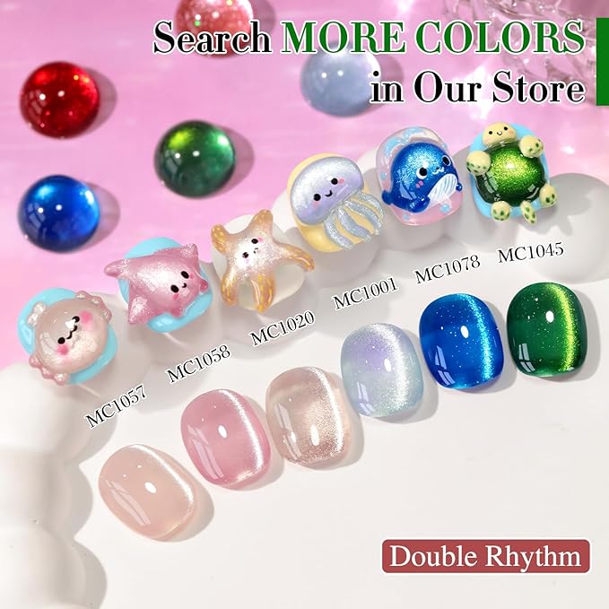- Cat Eye Gel Nail Polish : Double Rhythm cat eye gel polish includes 1 color 15ml / 0.5 fl.oz gel polish. The cat eye gel can be combined with different bacse colors arbitrarily, you can get different colors nail art.You can use different base coat to creat different sytles.