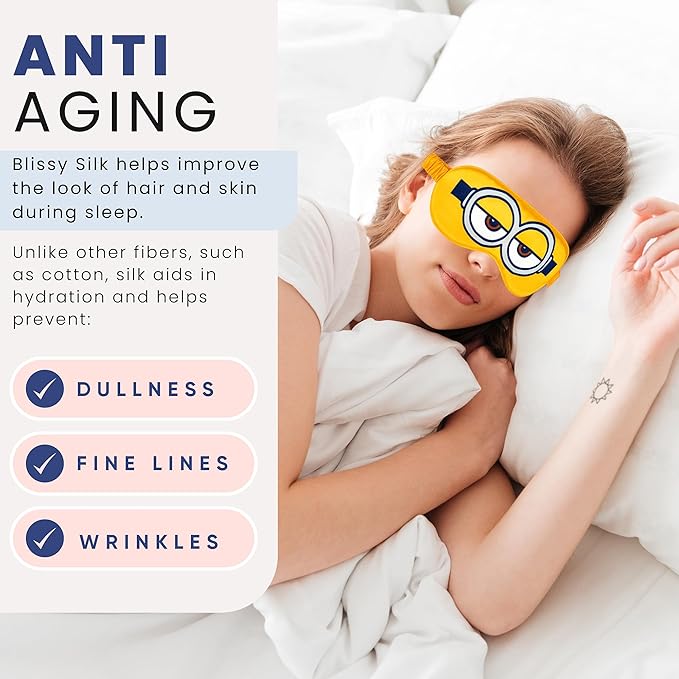 Blissy Silk Sleep Mask - Eye Sleeping Mask for Women & Men for Total Blackout - 100% Pure Mulberry Silk, 22 Momme 6a Fibers - Blindfold Sleep Mask Side Sleeper Eye Cover (Minion)