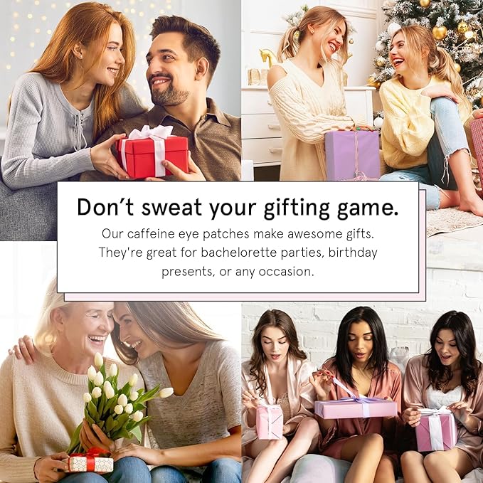 - Awesome Gifts for Glow-Getters - Whether for a birthday or a bachelorette bash, you can never go wrong with our under eye patches caffeine mask. Enjoy our 30-Day Feel Good Policy. If you're not 100% happy, just let us know and we'll make it right!
