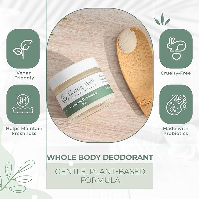Living Well with Dr. Michelle Probiotic Whole Body Deodorant Cream | Unscented, Aluminum-Free & Paraben-Free | Natural Deodorant for Sensitive Skin, Underarms & Beyond