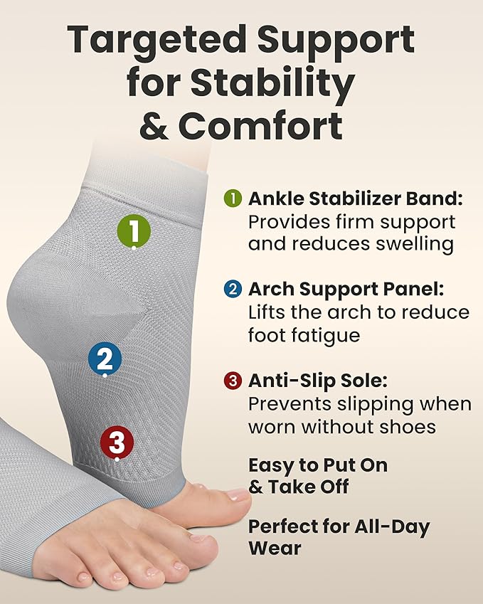 - ๐๐ป๐ธ๐น๐ฒ ๐ฃ๐ฎ๐ถ๐ป ๐ฅ๐ฒ๐น๐ถ๐ฒ๐ณ - Wear these ankle compression sleeves under your shoes and socks for pain relief in your heels caused by plantar fasciitis, injury, sprained ankle, Achilles tendonitis, edema, heel spurs, varicose veins, fallen arches, lymphedema, swollen ankles. Our toeless ankle sleeve supports your leg all day