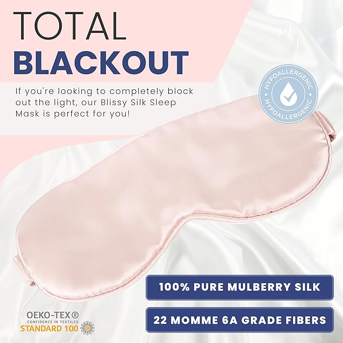 - TOTAL BLACKOUT - If you're looking to completely block out the light, our Blissy Silk Sleep Mask is perfect for you! Made with 100% pure Mulberry silk and 22 momme 6A grade fibers, this mask will keep the light out and help you get a good night's sleep.