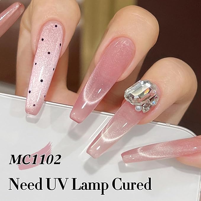 - Cat Eye Gel Nail Polish : Double Rhythm cat eye gel nail polish kit includes 1 color 15ml / 0.5 fl.oz gel nail polish. The cat eye gel can be combined with different bacse colors arbitrarily, you can get different colors nail art.You can use different base coat to creat different sytles.