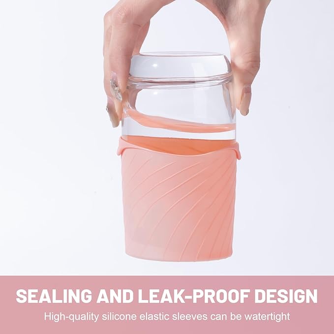 • EASY TO INSTALL: Put this leak-proof sleeve on bottles that are prone to leakage. It can be firmly fixed on the containers of toiletries and other beauty and personal care products. The silicone material can absorb the bottle to prevent leakage during travel and contamination of your Other items.