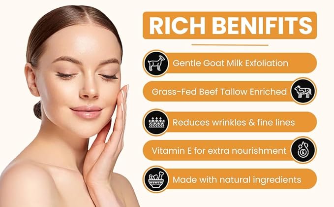 - Luxurious Organic Blend: Our goat milk moisturizer combines grass fed beef tallow and goat milk, crafting an opulent, natural moisturizer. This organic concoction nourishes skin, offering a luxurious experience unlike any other, perfectly suited for those who cherish natural beauty care.