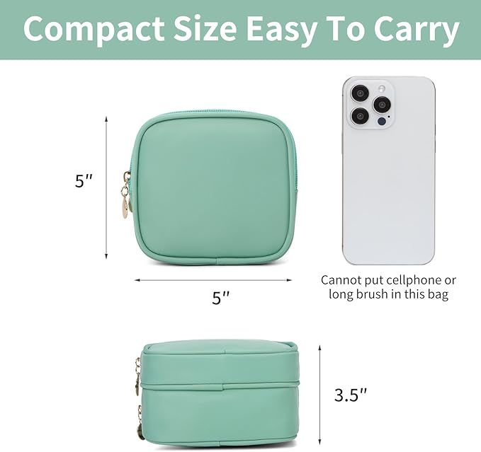 - 【Compact Size】: The size of this cosmetic bag is 5 in x 4.75 in x 3.5 in. The compact size makes travel makeup bag easy to carry, taking into account practicality and portability. The perfect size fits easily into your handbag or travel case, making it your perfect travel companion!