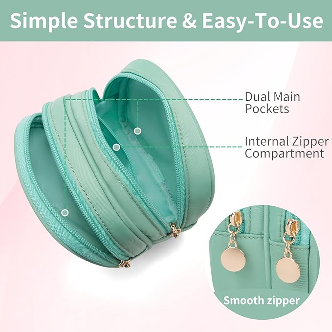 Small Makeup Pouch, Double Zipper Cosmetic Bag, Travel Makeup Bag, Cute Makeup Bag for Purse, Mini Toiletry Bag (mint green)