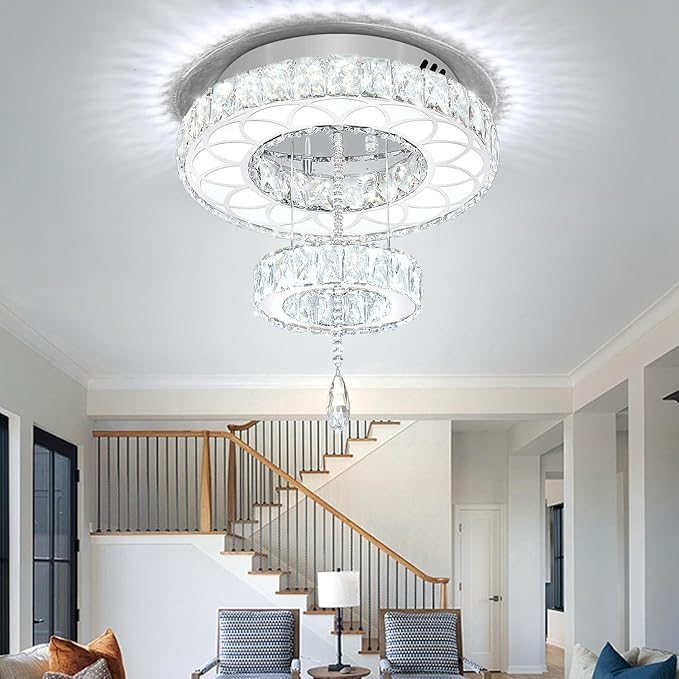 Flashing God Dia 16" Mini Chandelier Modern Crystal Chandeliers for Hallway LED Dimmable Flush Mount Ceiling Light for Dining Room Living Room Bedroom