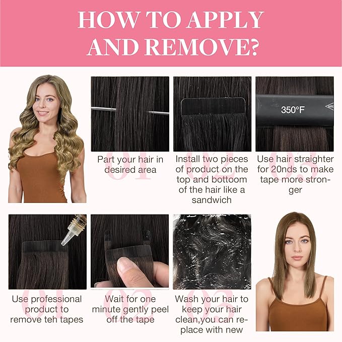 - Heat-Styling & Care Tips: GOO GOO tape in extensions are heat-safe up to 250°F. Curl or straighten as desired. Wash gently with mild shampoo in lukewarm water, then air dry. Keep them smooth, shiny, and ready for any look.