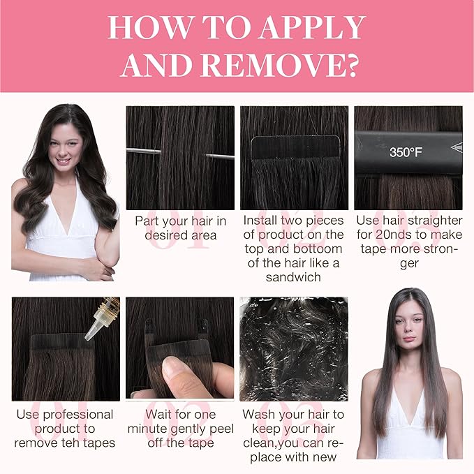 - Heat-Styling & Care Tips: GOO GOO tape in extensions are heat-safe up to 250°F. Curl or straighten as desired. Wash gently with mild shampoo in lukewarm water, then air dry. Keep them smooth, shiny, and ready for any look.