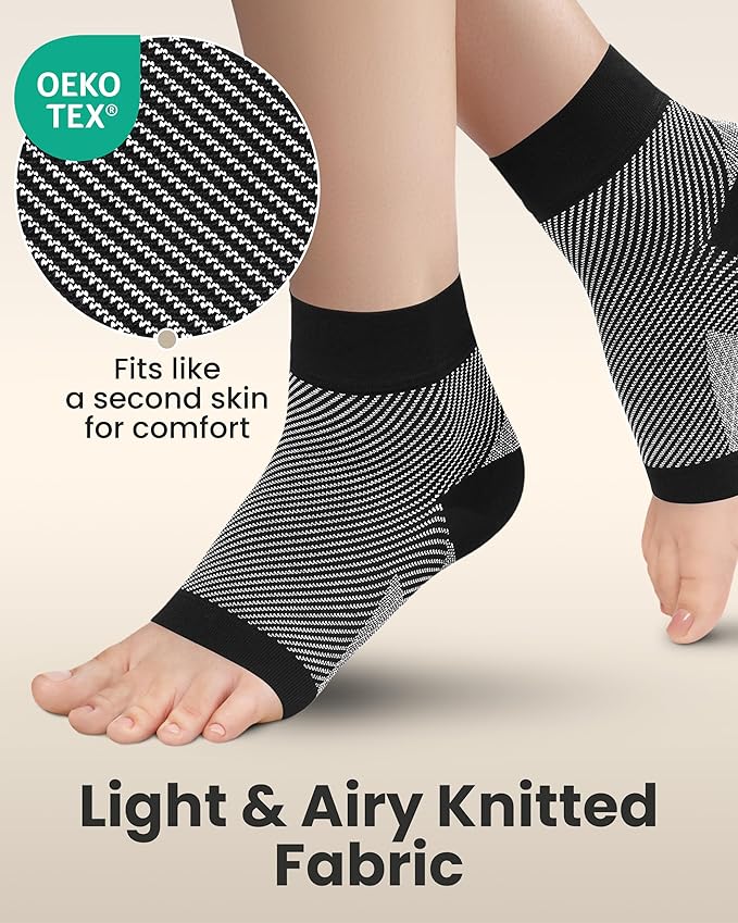 - ๐๐ป๐ธ๐น๐ฒ ๐ฃ๐ฎ๐ถ๐ป ๐ฅ๐ฒ๐น๐ถ๐ฒ๐ณ - Wear these ankle compression sleeves under your shoes and socks for pain relief in your heels caused by plantar fasciitis, injury, sprained ankle, Achilles tendonitis, edema, heel spurs, varicose veins, fallen arches, lymphedema, swollen ankles. Our toeless ankle sleeve supports your leg all day