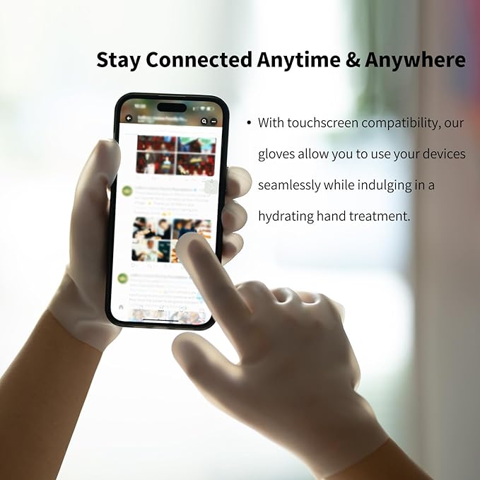 - Touchscreen Compatible: Enjoy uninterrupted device usage with our hydrating silicone gloves, allowing you to navigate your phone or tablet without removing them during hand treatments.