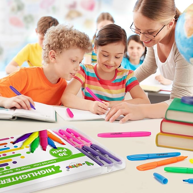 V-Opitos 30 Pack Highlighters in 6 Assorted Colors, No Bleed, Bright With Soft Chisel Tips, Ideal for Office and School Supplies